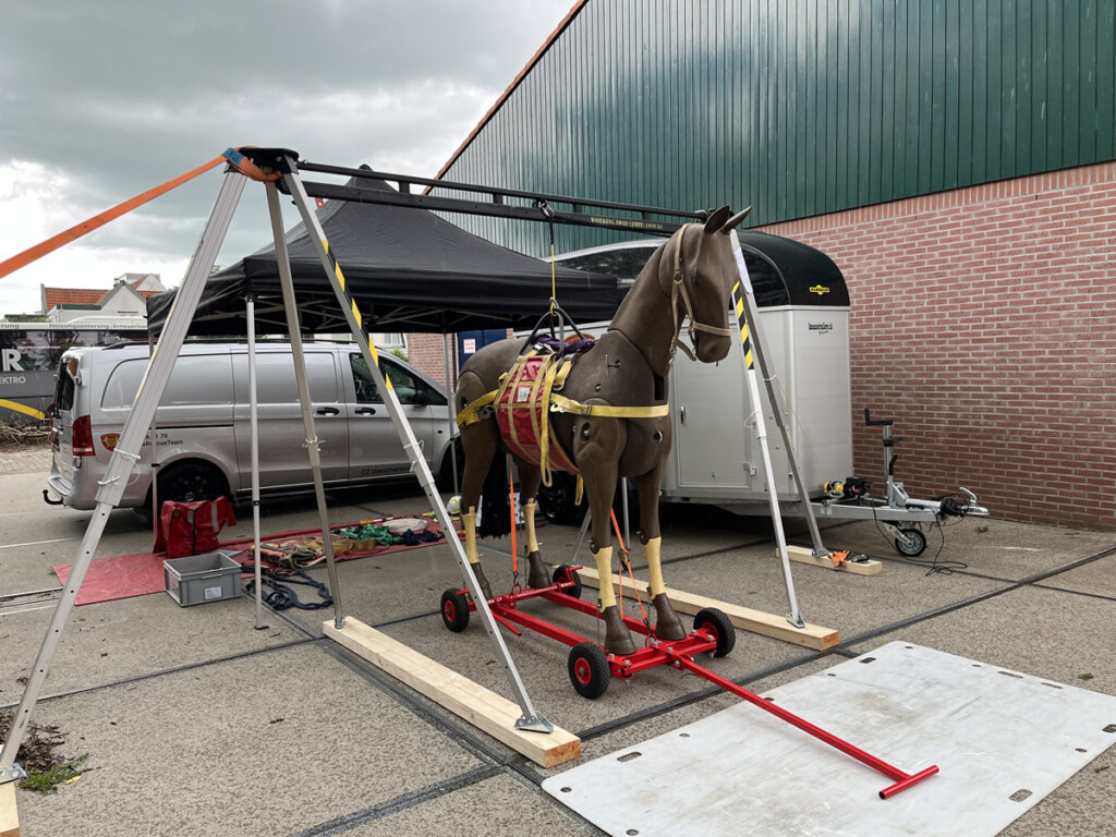 Ons team komt ter plaatse met ondersteunend materiaal voor de al aanwezige hulpdiensten maar tevens eventueel zonder de aanwezigheid van de reguliere hulpdiensten. Ondersteunend materiaal is bijvoorbeeld een paardenbroek, sleepbanden, hijsbanden, singels, ankers, noodhalsters.